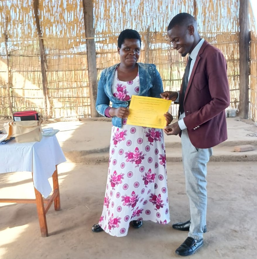 On completing the Training of Trainers course, Esther had to set up her own seminar so that she could be assessed in an actual training situation. She contacted churches in Makawa (30km from Mangochi ) where Sunday school teacher training had never been received. CFCM staff member, Elevate Mizinga, and the Coordinator for the Central Eastern region, Oden Kaning’a, attended the seminar and were very pleased to award her the certificate as a CFCM Volunteer Trainer.